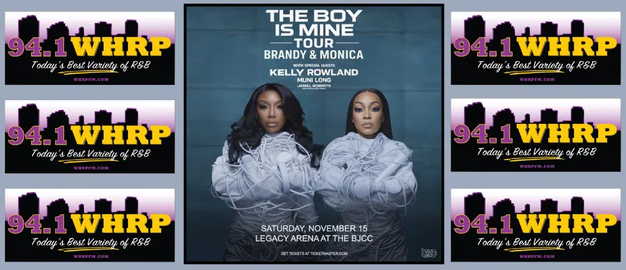 The Boy Is Mine: Brandy & Monica, Saturday November 15, 2025 at the Legacy Arena / BJCC in Birmingham. Special guests, Kelly Rowland, Coco Jones, Munit Long and the 2025 American Idol winner, Jamal Roberts!