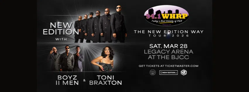 Register for a chance to win 2-tickets to see, The New Edition Way Tour! Starring New Edition, Boyz II Men & Toni Braxton! Saturday, March 28th at the BJCC Legacy Arena in Birmingham. Get ready to take a trip to the early years of the 80's with the Legendary New Edition! Bobby- Ralph-Ricky-Mike -Ronnie & John…
